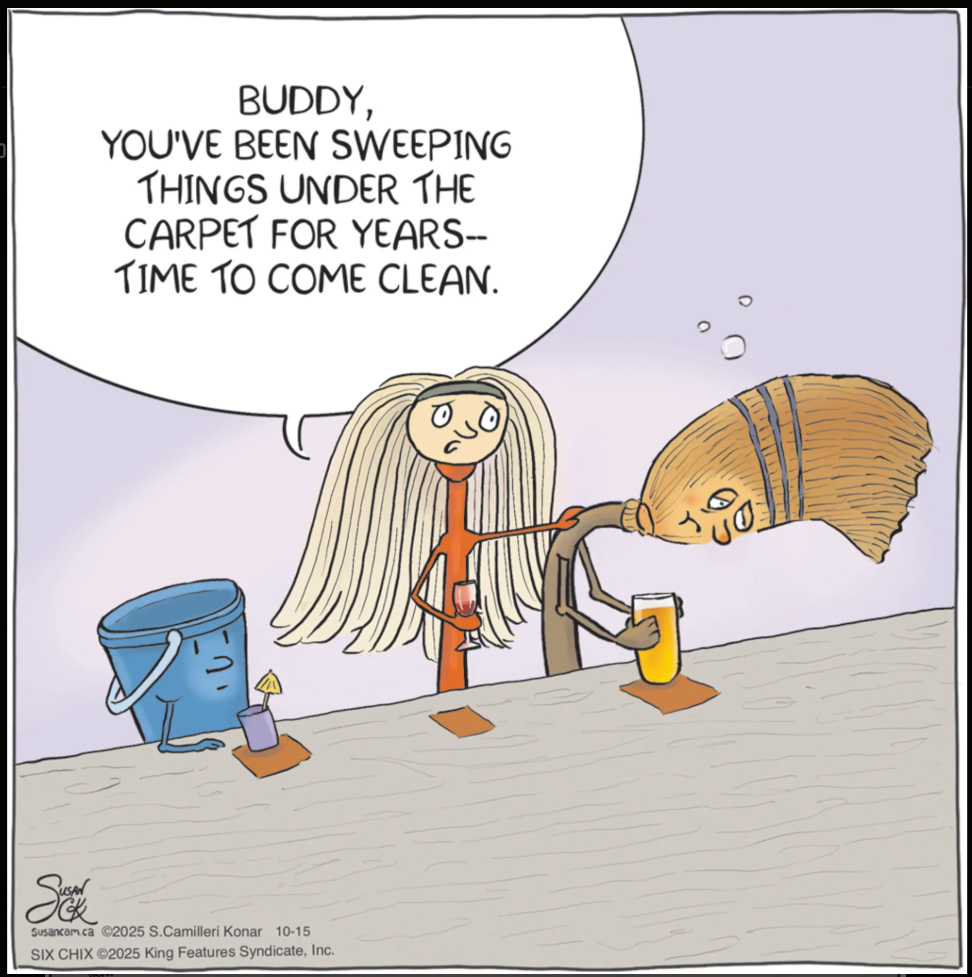 6Cx: There’s a lot to unpack here, but I can’t help thinking about the carpet. Is it a literal carpet? Is it sentient too? Is it annoyed about having stuff swept under it or…something else? So many unsettling possibilities.