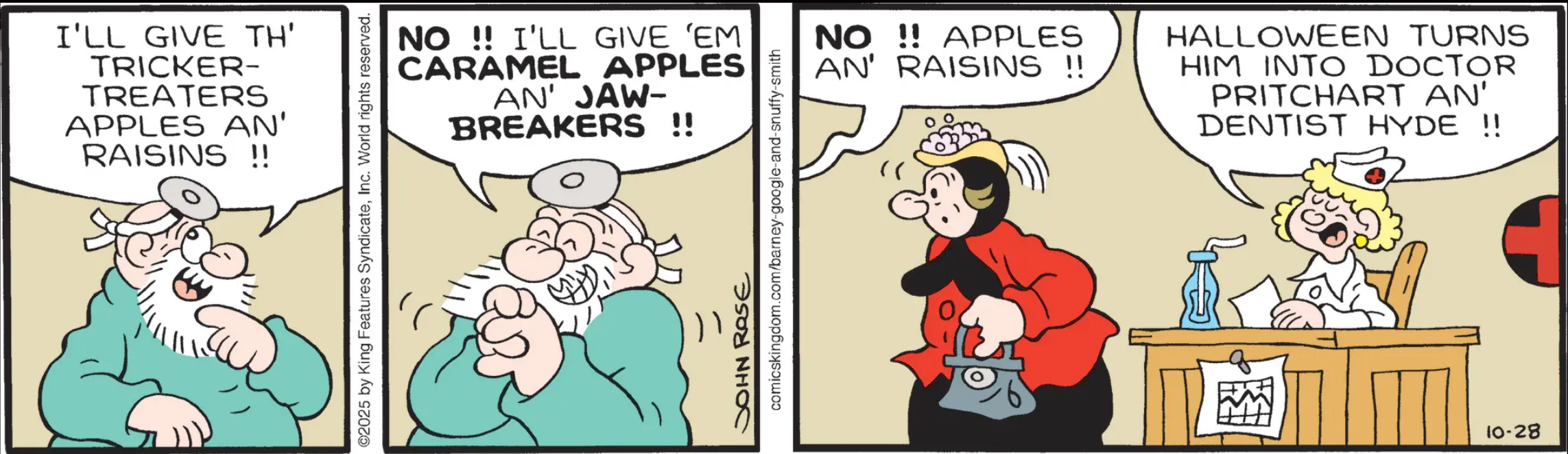 Snuffy Smith-“I’ll give those trick or treaters apples with razor blades.”