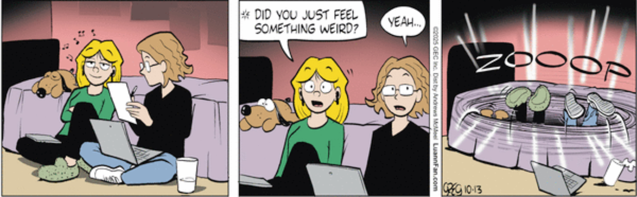 Big news, everyone! Bernice and Luann have been Consumed by some kind of mysterious Portal. More on this story as it develops, if it turns out to be interesting (it won’t).