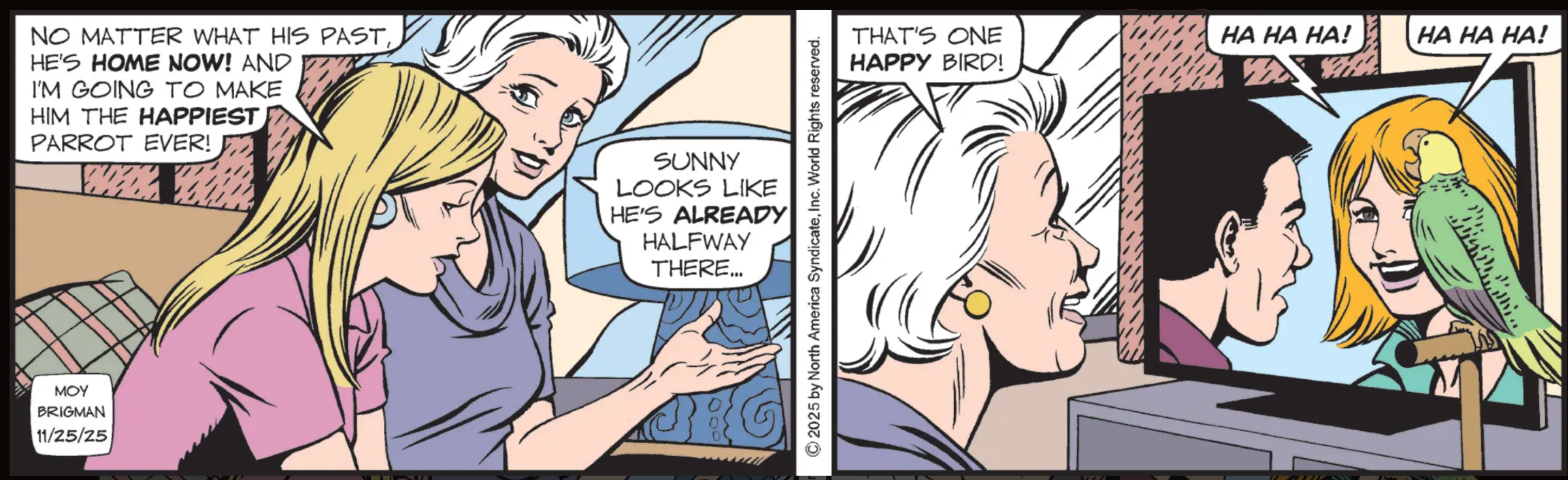 MW: I’m getting a feeling that the parrot arc was dashed off as content-free filler for the gap between the Olive Saga and whatever’s going to start up after Thanksgiving. Pity, after all the great ideas that have been tossed around in the comments here, not that I expected anything that interesting would actually happen.