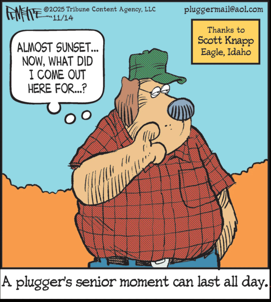 Pluggers, if your ‘senior moments’ last more than a couple hours, please consult your doctor. Actually, find a loved one who can consult a doctor for you, you’ll probably forget.