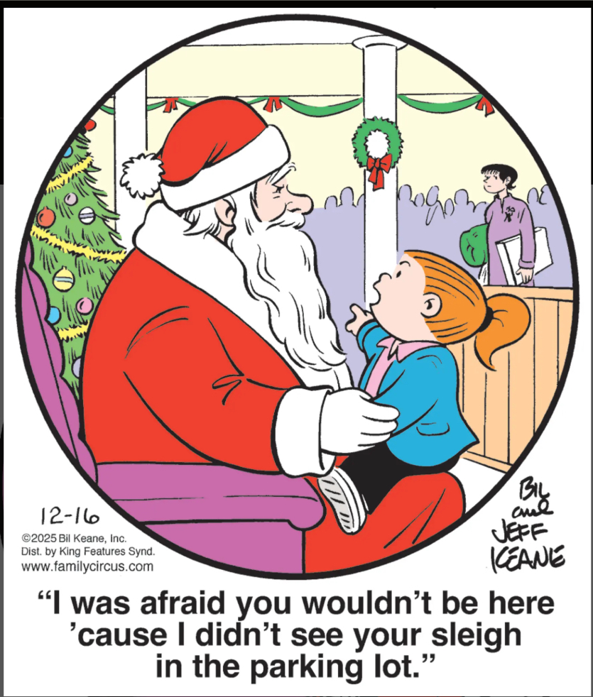 FC – Santa can’t leave his sleigh in the parking lot anymore. The naughty kids who got coal last year always slash his runners.