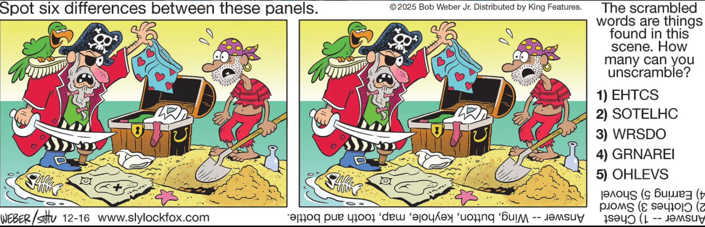 SFx: The pirates in the left panel are horrified because the trunk of modern clothing indicates some sort of disruption in the time-space continuum. The pirates in the right panel are horrified because they’re super, Our Flag Means Death-level gay and come on, heart-print boxers? EWWWWW!