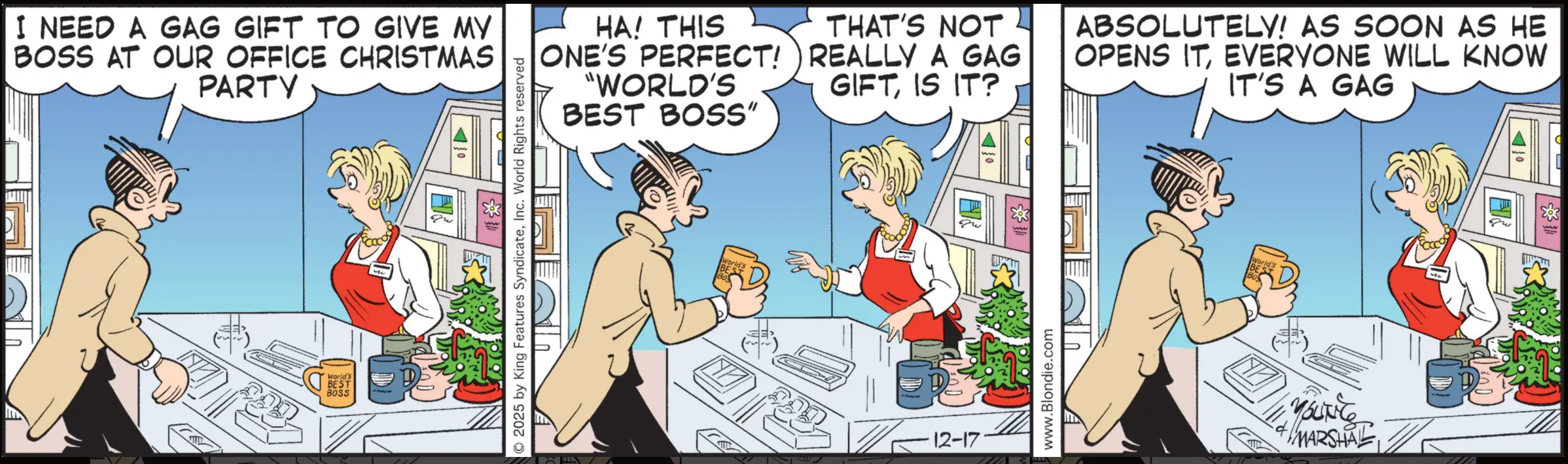 BLONDIE: Dagwood won’t be laughing when he opens his “World’s Sexiest Husband ” mug on Christmas morning.