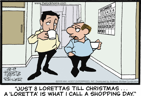 Shlockhorns – Just 8 more Shlockhorns ‘til Xmas – a Shlockhorn is a what I call a comic strip that consistently shits the bed….