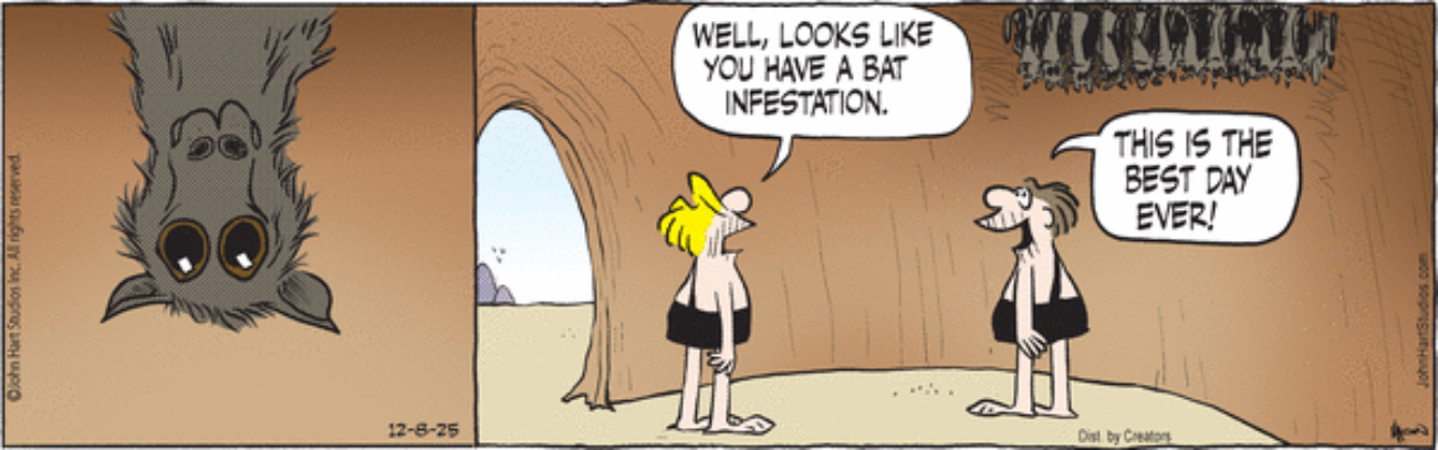 B.C. is currently produced by a team consisting of Hart’s grandsons Mason and Mick Mastroianni, as well as his daughter Perri. Can they come up with a sensical punchline? No, unless you think bat guano is the funniest thing you’ve ever heard of! Do they love drawing upside-down bats? They most certainly do!