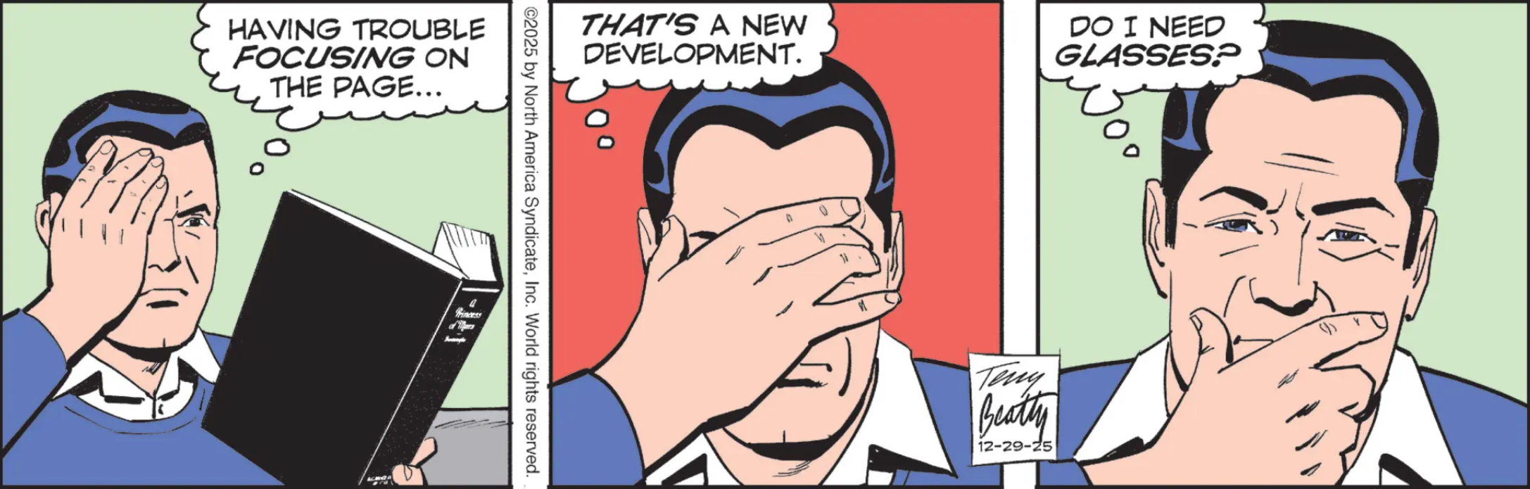 For a moment I was afraid that I was finding Rex Morgan relatable, but no! I just needed glasses! (googles “cataract symptoms”)