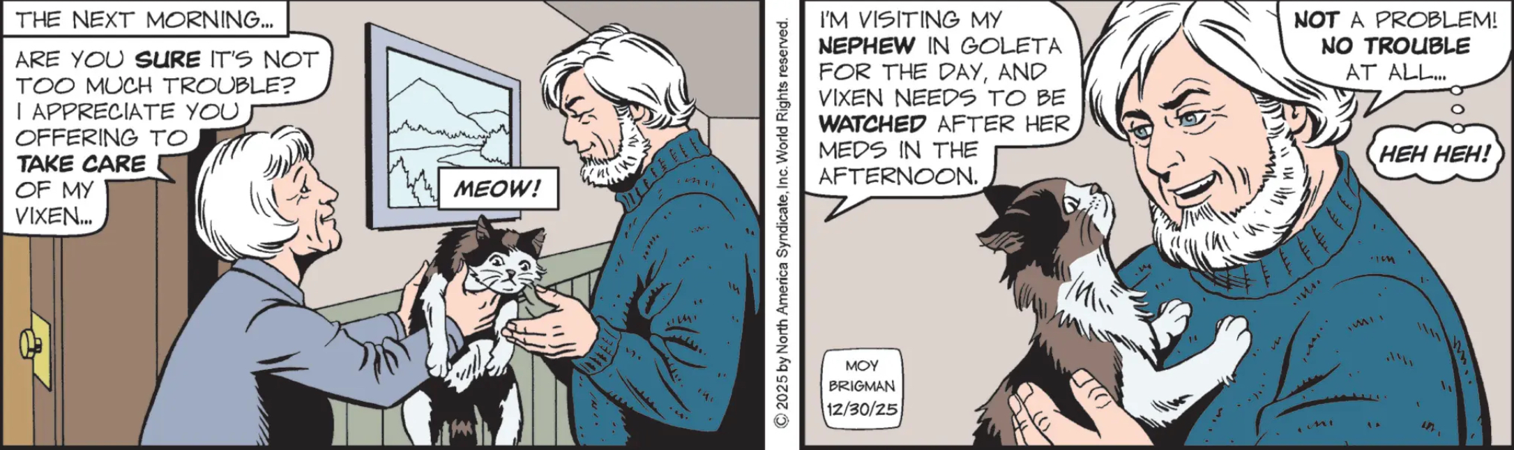 MW: Look at the cat on December 30! He did NOT sign up for the Camerons’ marital mind games! That’s Sunny’s job or maybe Mary Worth’s job!