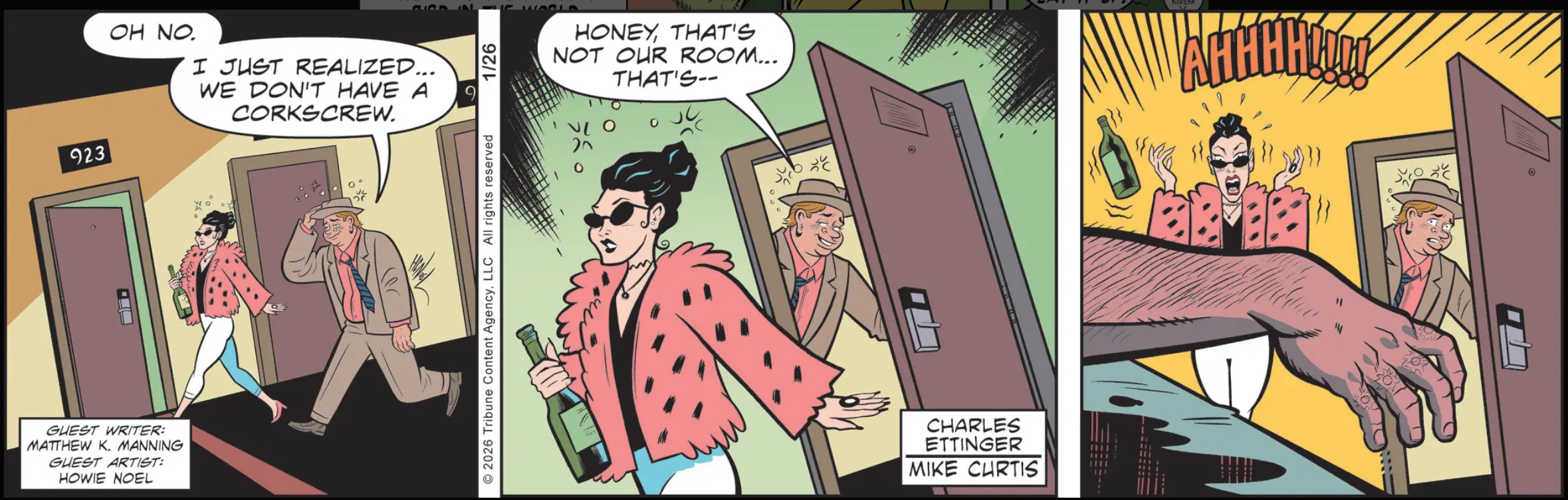 Dustin: Did you know that if you have a fetish for being forced to dress up in sequined tights and body slammed by 300 lb women, you can just write a newspaper comic about it and no-one will stop you?