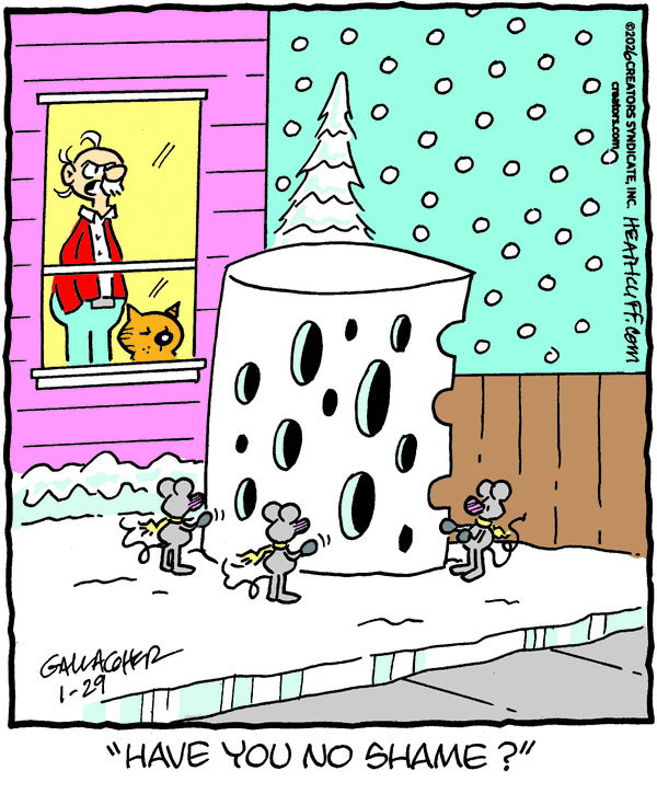 HEATHCLIFF: So, people : snowmen :: mice : snow cheese? Learned something new today.