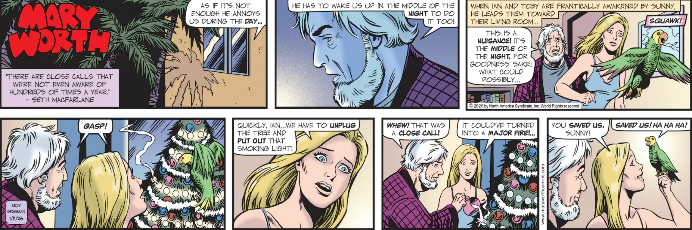 Mary Worth: A talking bird causes zany havoc in a household and nearly ruins a couple’s relationship, but then saves them when their house is about to burn down? Add in a nearly forgotten song from an old Broadway musical and, yep, I’d definitely believe Seth MacFarlane had something to do with this story.
