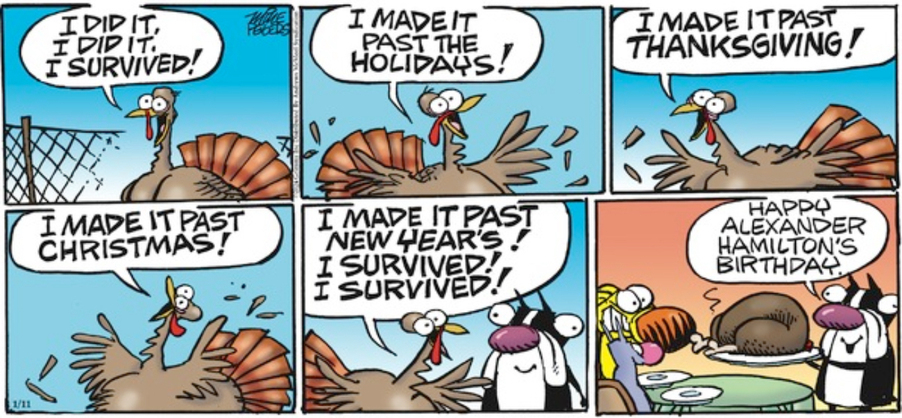 For a traditional Alexander Hamilton’s birthday dinner, you should challenge the turkey to a duel.