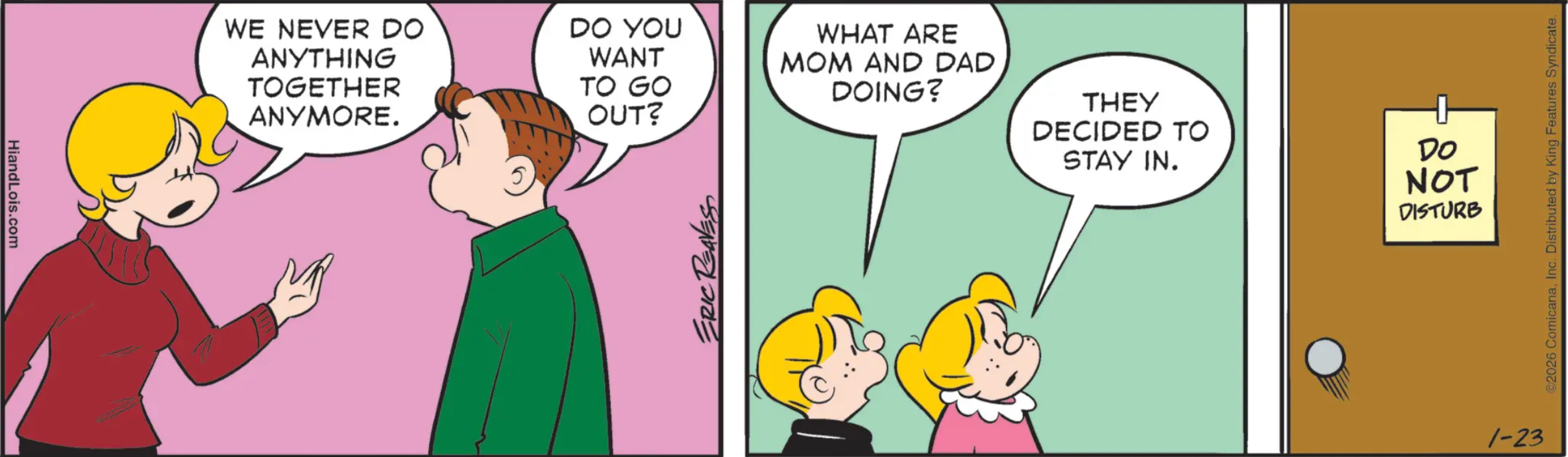 HI AND LOIS: Ok, we’ll compromise then, Josh. Hi and Lois still “never do anything together anymore”, but sex is happening behind that “do not disturb” sign.
