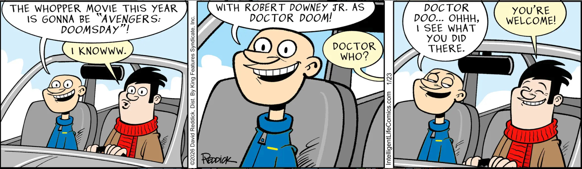 IL: I read “the whopper movie this year” and honestly thought that this meant Burger King was making a Whopper movie. This strip is actively sapping my brain cells.