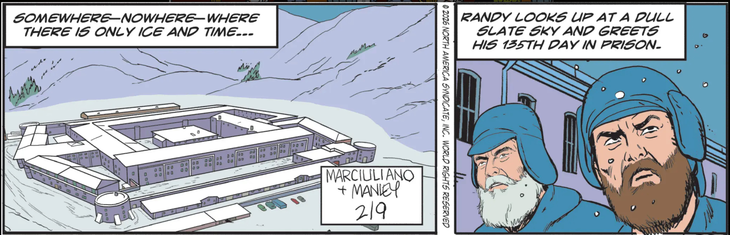 Oh, it turns out Randy has been imprisoned for four and a half months somewhere where there is “only ice and time,” so, I guess … Norway? Like, he went to Norway to track down his wife by any means necessary, except some of those means violated some local laws and he was arrested and then duly tried, convicted, and sentenced? Seems fair to me. If you didn’t want to do the time in the cold, you shouldn’t have done the crime in the cold, Randy.
