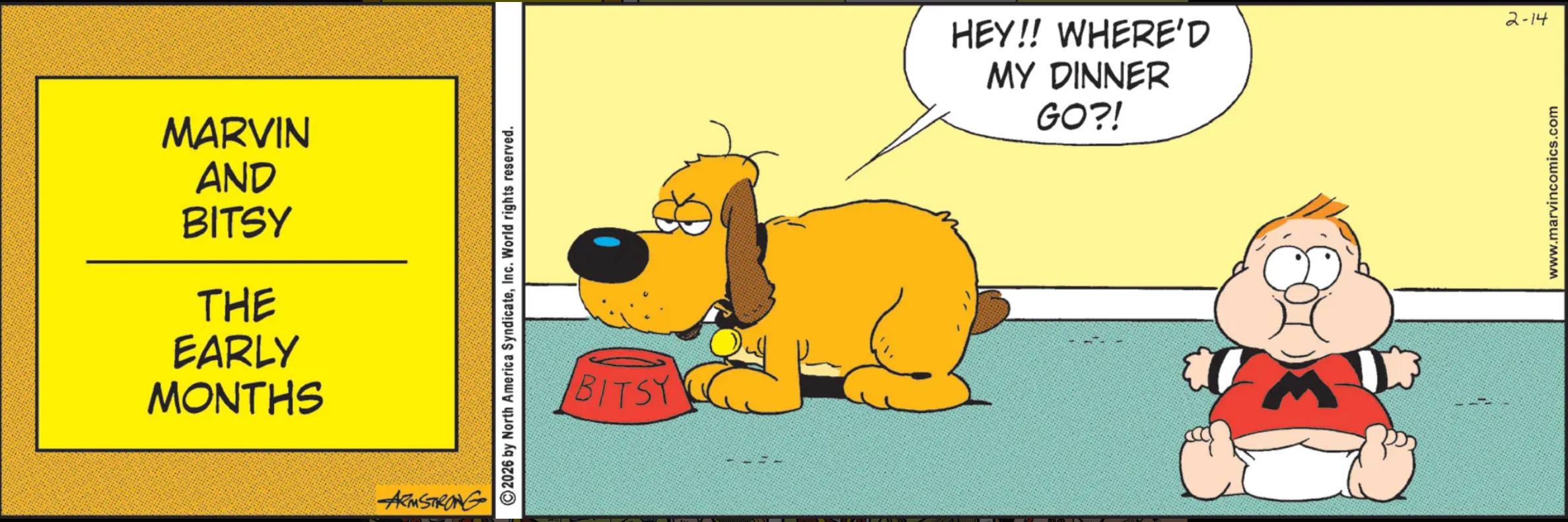 Ha ha, it’s funny because as an infant Marvin was left unsupervised by his parents and ate dog food!