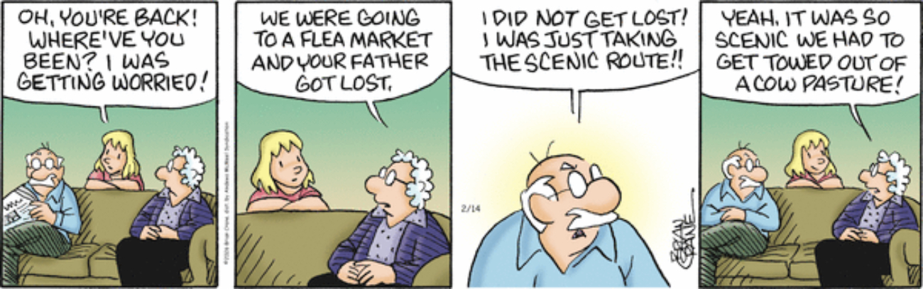 Is the Pickles writer vacationing near me? This week alone a mom with her kid drove into a lake and a couple drove into a canal (all parties were rescued by passersby’s). I certainly saw the humor in it.