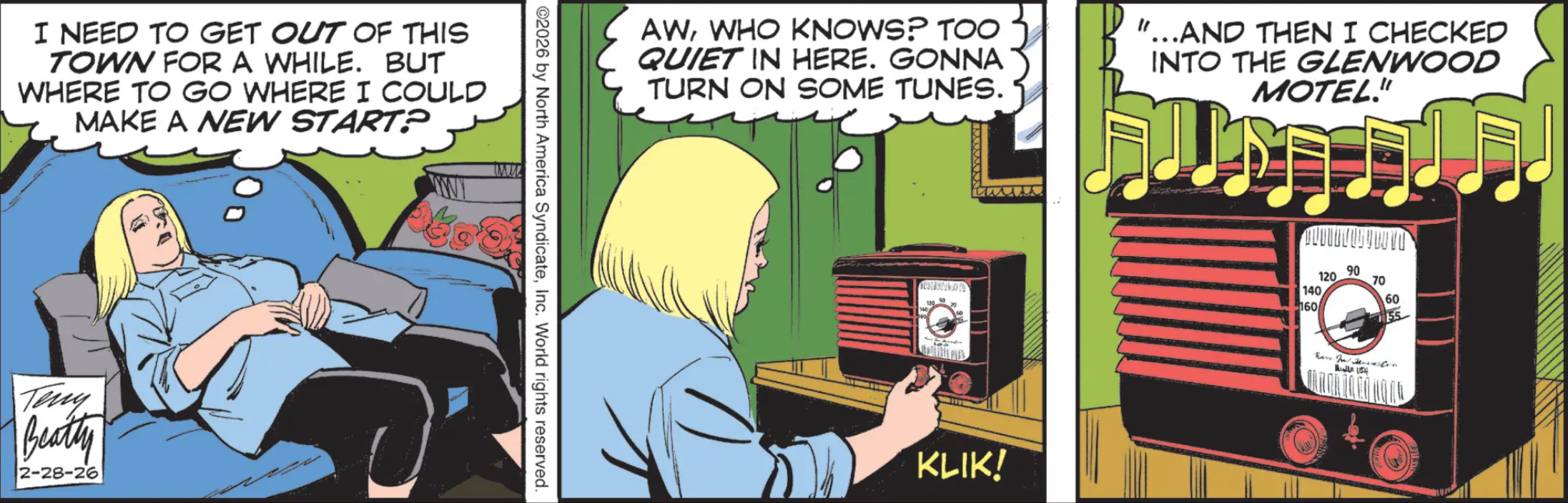 Rex Morgan: Wow, the artist did a great job drawing an 85 year old radio. Too bad he’s not as good at drawing human faces.