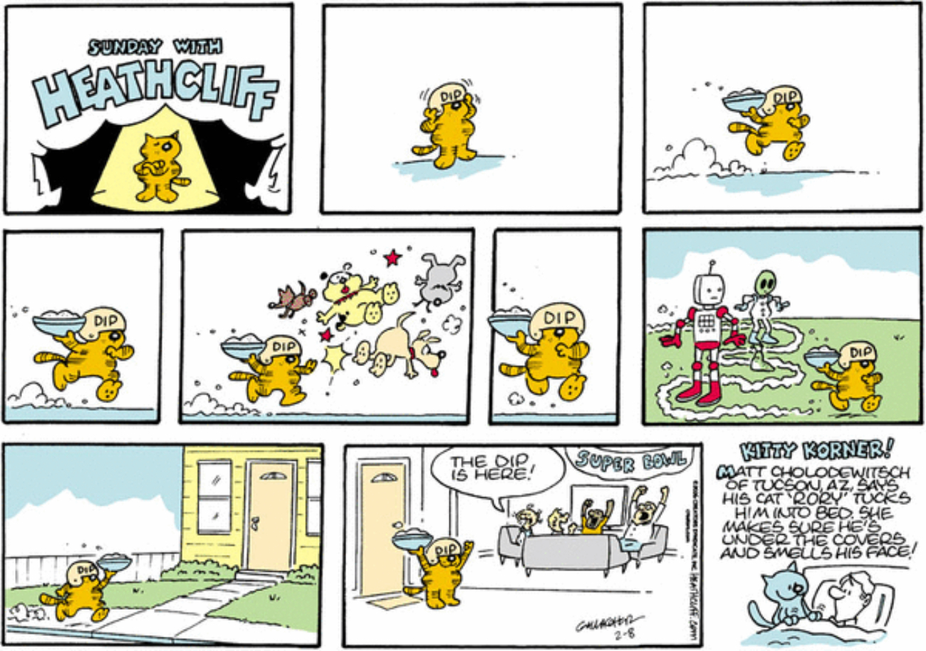 Heathcliff-“The dip is here!” And he brought dip.