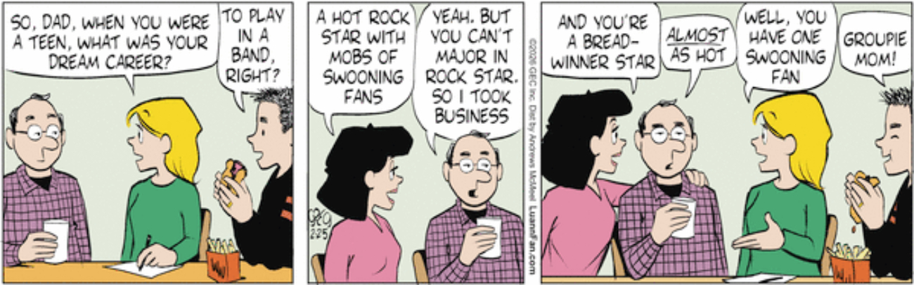 Luann: “You can’t major in Rock Star”.
