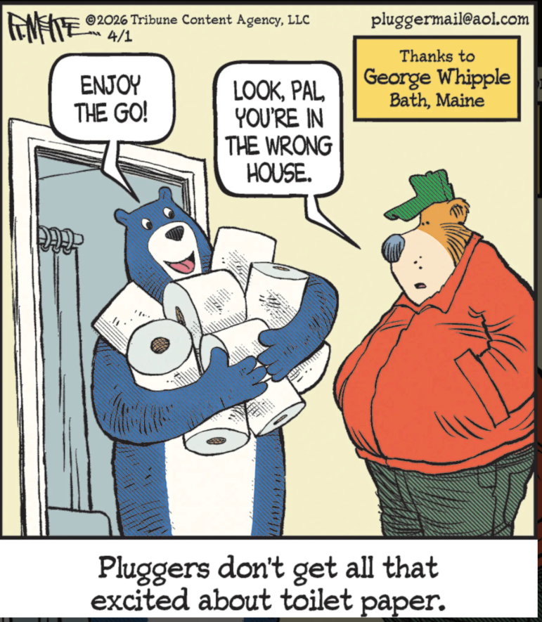 Pluggers: I hate to admit I laughed unironically at this strip. As if the Pluggerbearman uses TP. We all know he does that in the woods.