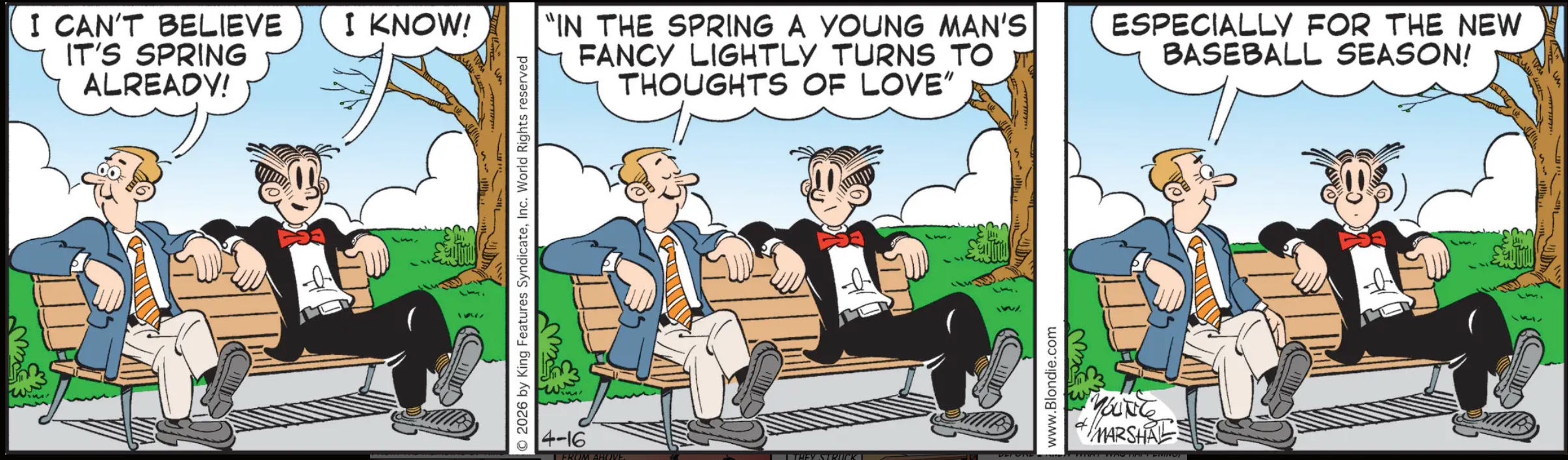 I really like Dagwood’s facial expression in the second panel. It’s like he’s thinking “Oh, am I being cruised? Is this the cruising section of the park? Not really my thing but I guess you should try everything once.” By the time we get to panel three he’s disappointed that he misread the situation.