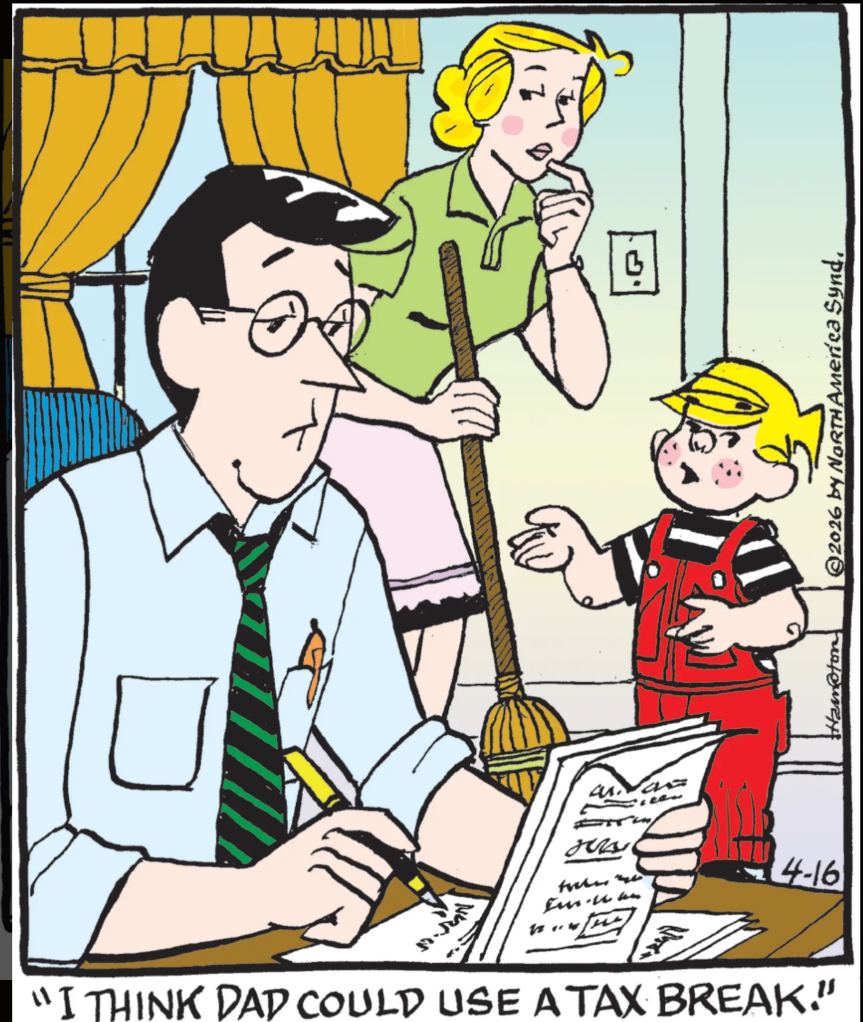 Dennis – “For the last time, Dennis, we are not going to have another kid just for the tax deduction. We did that once and it was totally not worth it.”