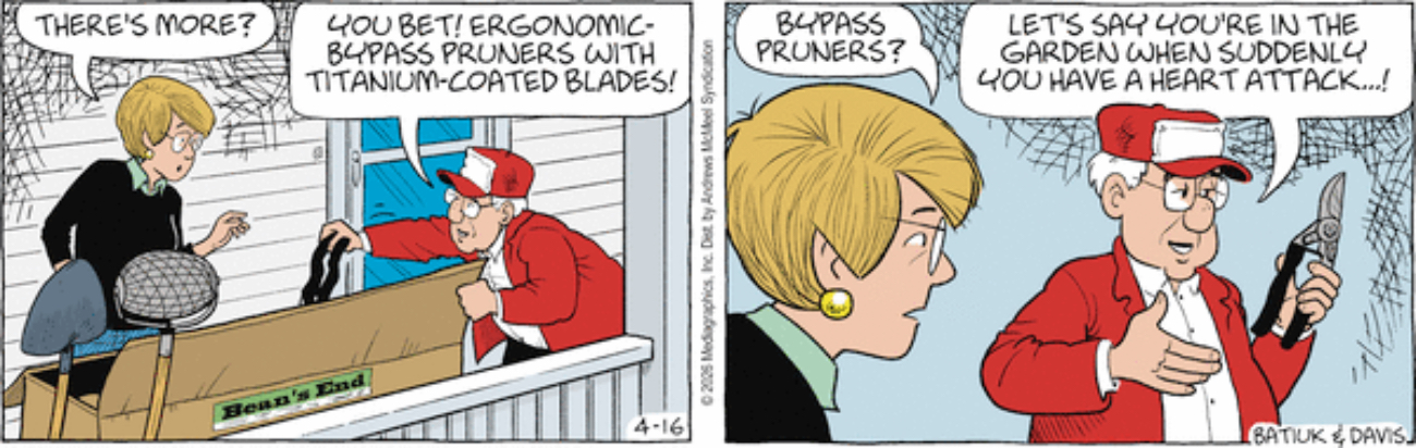 Crankshaft: Ed’s contemplating performing bypass surgery with gardening tools? Guys, it’s time you stopped letting him have anything sharper than a rubber ball!