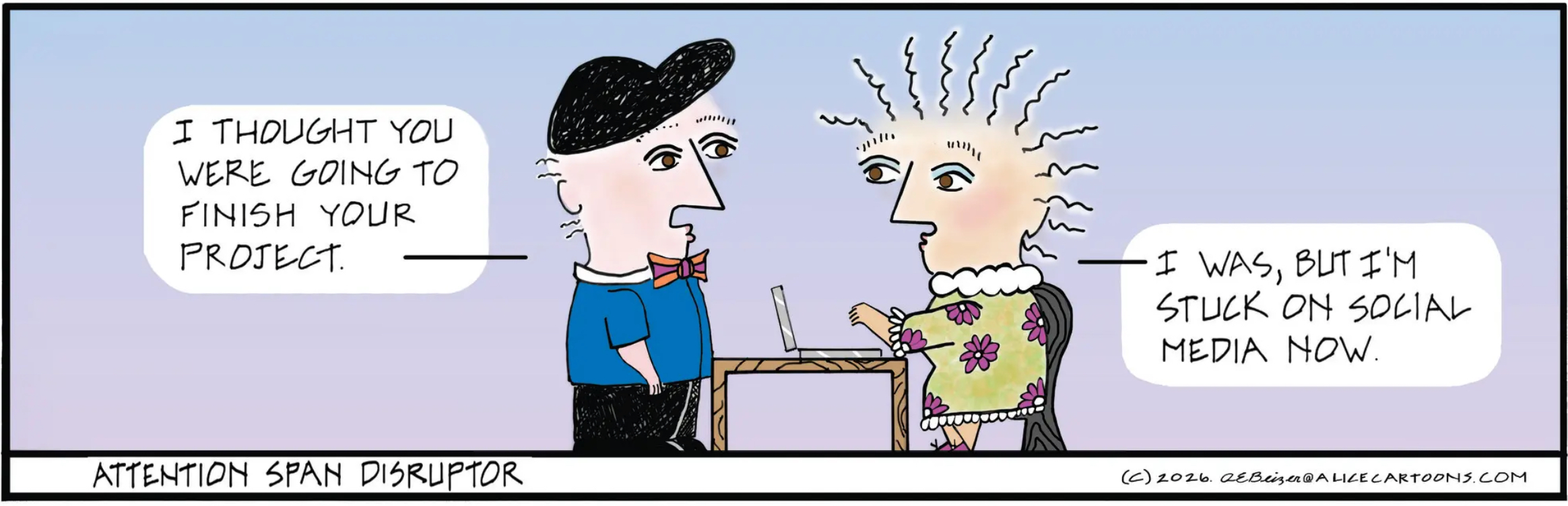 Oh, man, social media … you guys heard about this? You heard about how addictive it can be? Alice has just gotten into social media, and it is not going well.