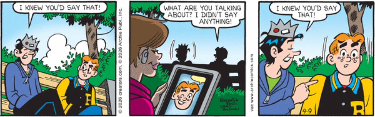 Archie lives in a world that also has Archie comics, but they’re just about his giant floating head making creepy innuendo (wink).
