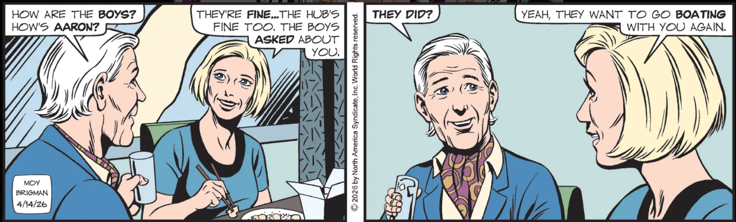 “The boy asked about you. They asked ‘Mom, what horrible crime did Grandpa commit that we cannot use his name in Comics Curmudgeon comment section?’”