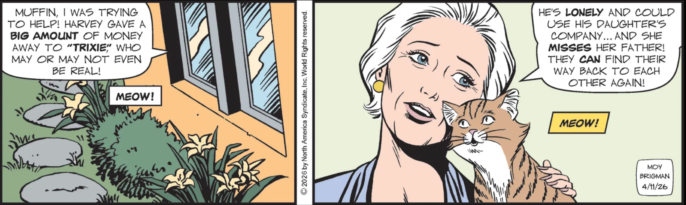“I’ve always loved that social interaction where someone is trying to stir up curiosity — in this case the cryptic mention of ‘my side business’ — hoping to draw the other party in. In this case, Sharon realizes immediately just how little Mary Worth meant by ‘How are you?’” –Handsome Harry Backstayge, Idol of a Million Other Women