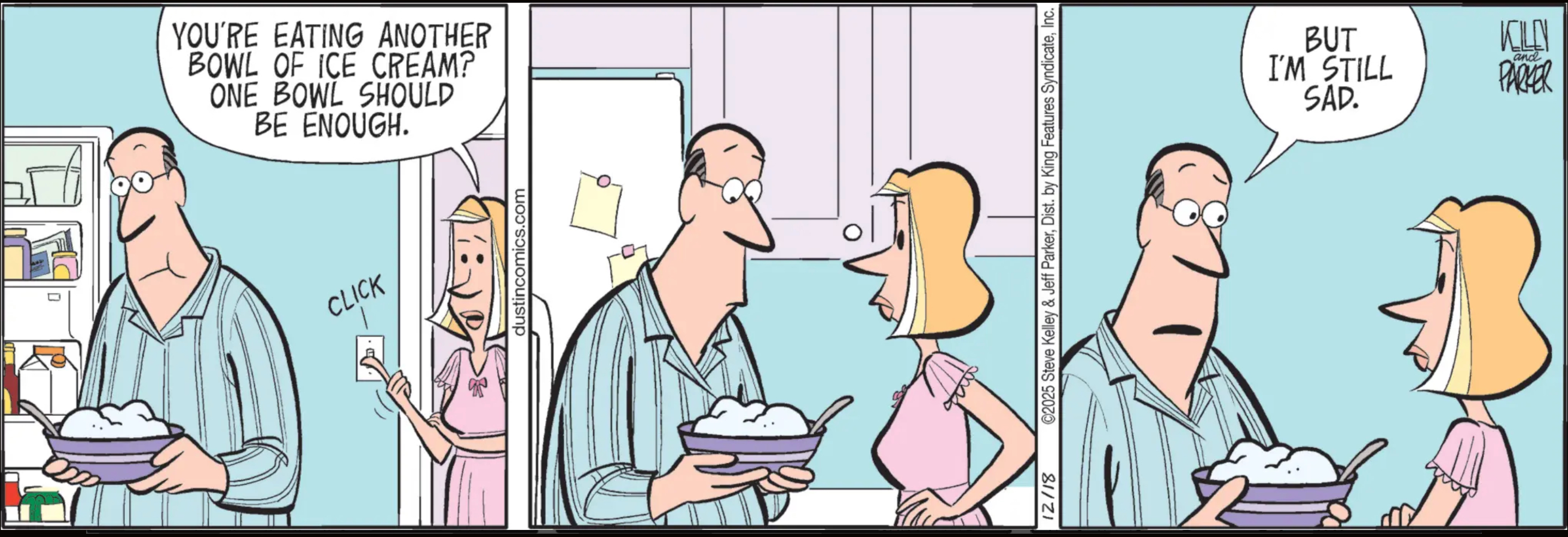 Nice try, syndicated newspaper comic strip Dustin! You’re not going to make me feel bad for Dustin’s dad! He sucks and his self-loathing only makes me stronger!