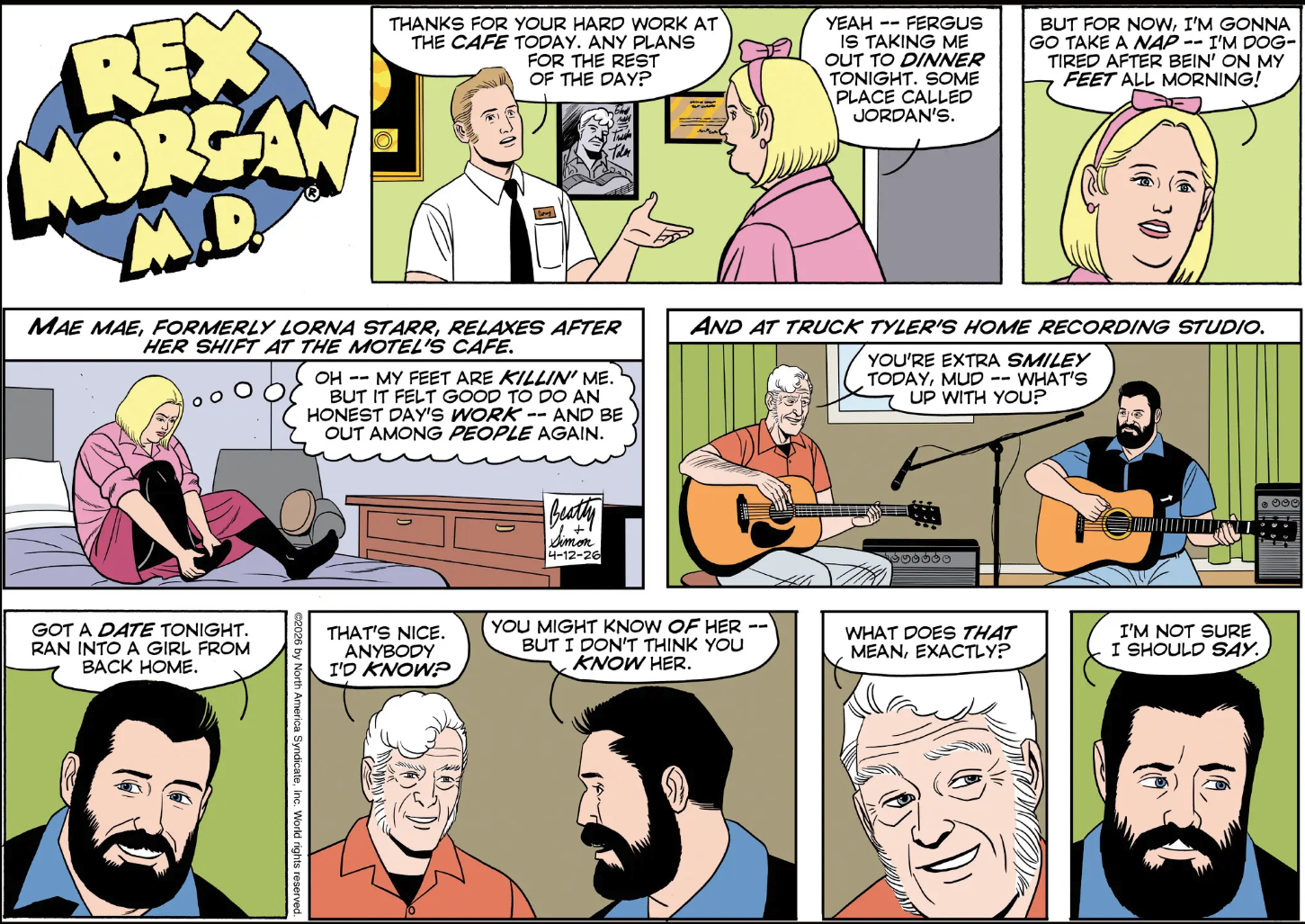 “I’ve always loved that social interaction where someone is trying to stir up curiosity — in this case the cryptic mention of ‘my side business’ — hoping to draw the other party in. In this case, Sharon realizes immediately just how little Mary Worth meant by ‘How are you?’” –Handsome Harry Backstayge, Idol of a Million Other Women