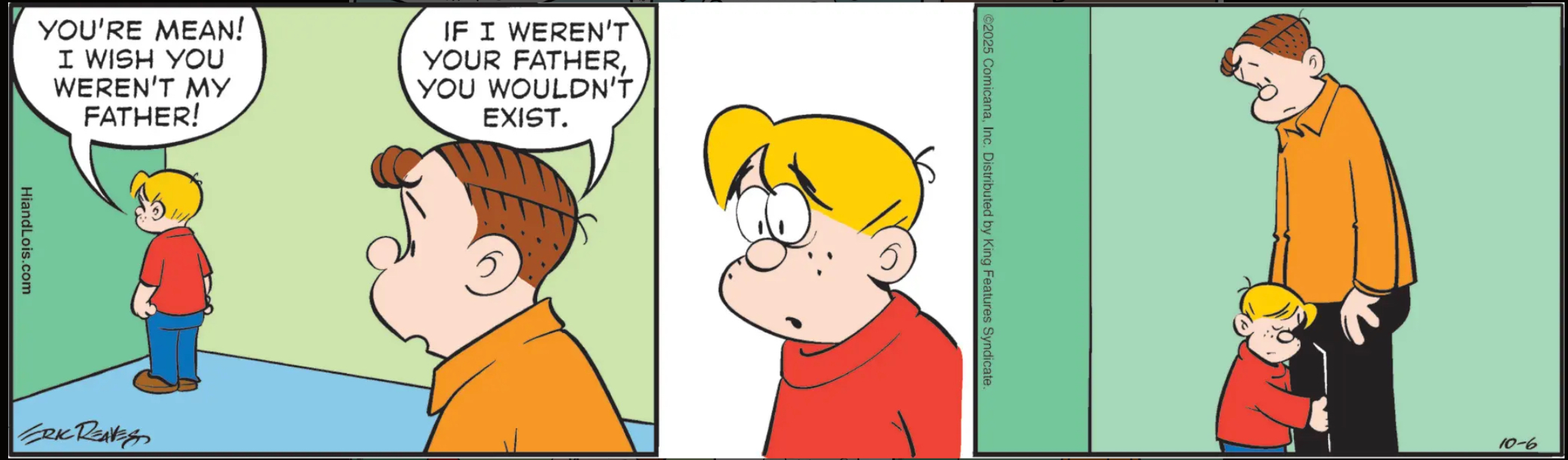 Look, Hi, I think we all know that Ditto was saying “I wish you were a different sort of person than you actually are.” You don’t have to drop this philosophical bombshell on him about how he’s trying to wish himself into the void or whatever. He’s a child and not a particularly smart one. You’ve tricked him into being on hugging terms with you again at the end here, but you aren’t really playing fair.