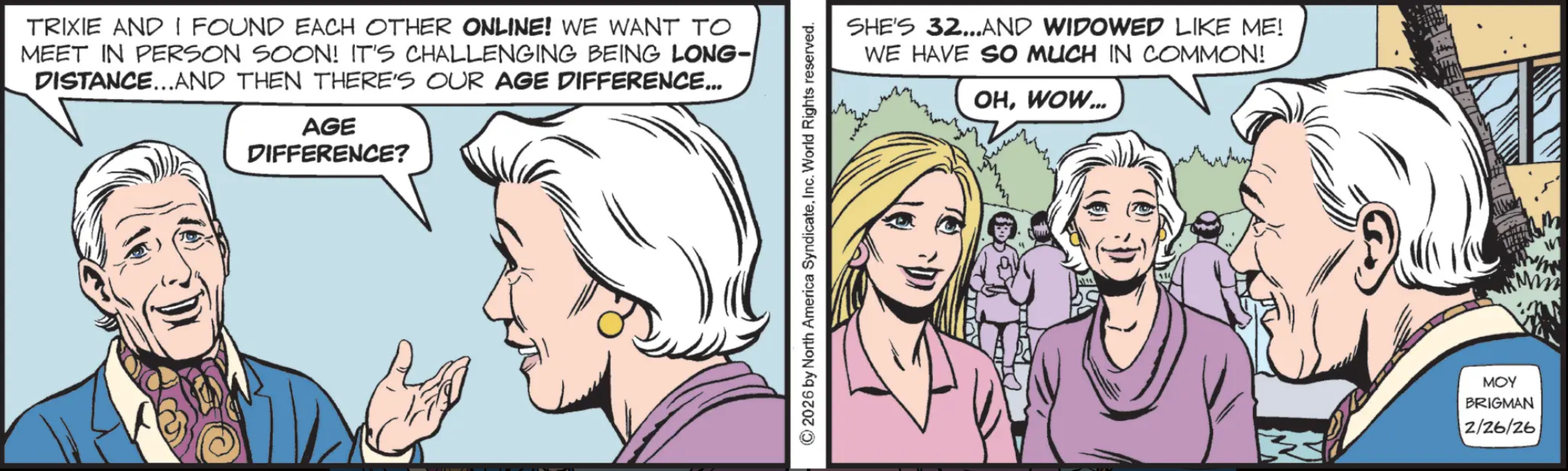 “Oh, wow … just 32 and a widow already! You know, most young women don’t really have a sense of how long a man can live, and when they meet one who’s older than them they assume he’s got like 5 or 10 years left in him, tops. Anyway, good for her!”