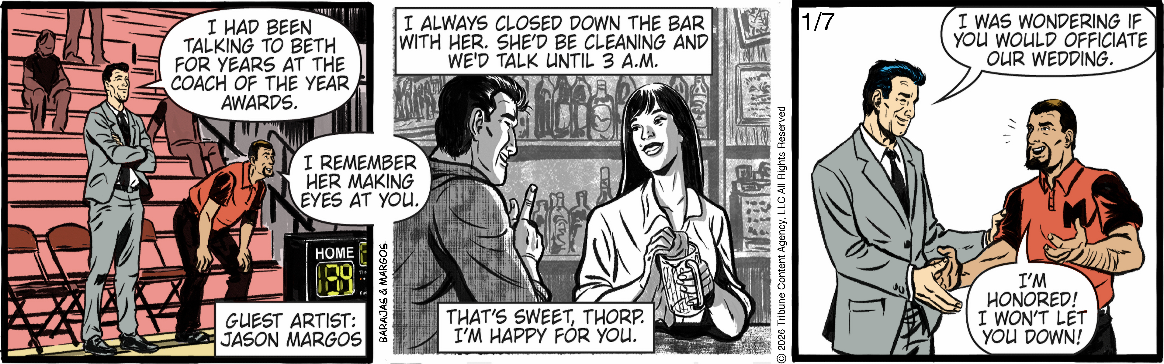 In other news, Gil Thorp got engaged! Congrats to Gil on going from “extremely divorced” to “engaged to his significantly younger rebound girlfriend,” which, between you and me, is just another more specific kind of extremely divorced.
