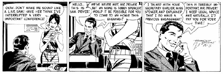 Also also I have been meaning for a long time to give a totally unsolicited plug for King Features’ DailyInk site, if only because I still get emails asking where to go for a build-your-own comics page site now that the Houston Chronicle shut theirs down. Yes, it’s a pay site, but it costs less than $2 a month. Did you know they’ll also deliver vintage strips, like the Judge Parkers below from 1969, which describe Sam and Abbey’s meet-cute? Obviously there are hippies involved.